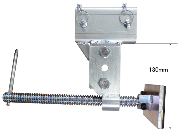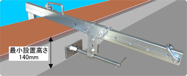 小力に標準装備されているレギュラーサイズのスライダーアッセンブリーと付け替え可能です。通常品ではハンドル部が屋上床面に当たってセットできないような、立ち上がりが140mm程度のパラペットにもセットが可能になります。